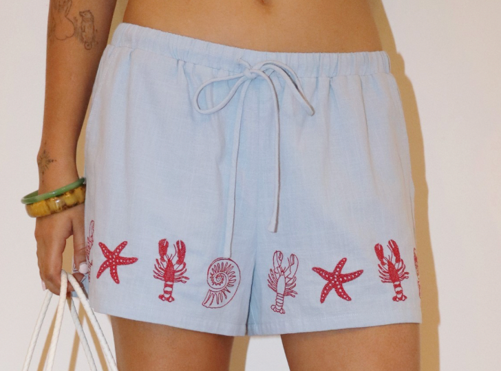 Ocean Icons - Ladies Baby Blue/Red Shorts