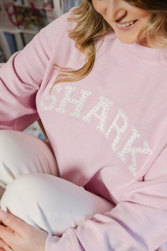 Shark Love Twill - Unisex Light Pink Corduroy Crewneck